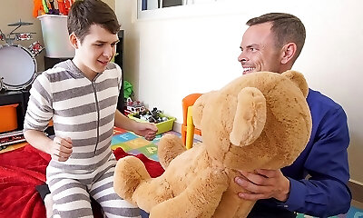 Twink Stepson And Stepdad Family Threesome With Stuffed Wolf