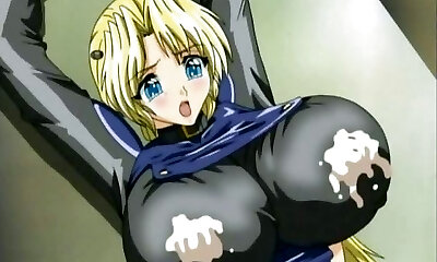 Captive hentai gets squeezed her huge melon mounds by doctor