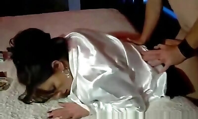 Smoking brunette slut gets her asshole hammered doggy style rough