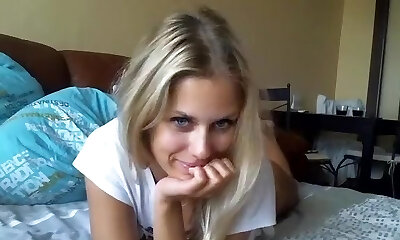 Slim Towheaded Teen Luvs To Show How She Plays With Her Tender Pussy