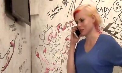 丰满的金发女郎摩洛伊斯兰解放阵线与大圆奶享受她的时间在一个gloryhole房间