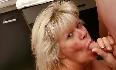 Ugly fat and wrinkled whore with huge saggy tits gives a blowjob for spunk