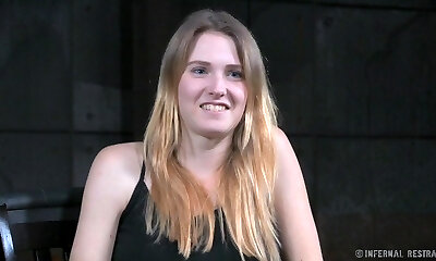Alluring blond bounded after teasing her pussy with a dildo