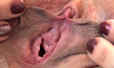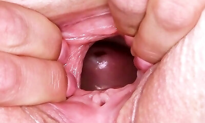 Erotic nympho is widely opened narrowed pussy in close up and having orgasm