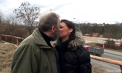 wunderbarer tschechischer pornostar wird von einem verrückten älteren kerl im freien gefickt