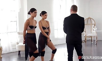 Nimble dancers Gianna Dior and Emily Willis pummeled by one guy