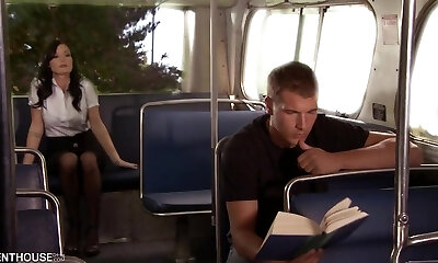 une brune vive et excitée n'a pas pu résister et s'est approchée d'un beau mec dans les transports en commun