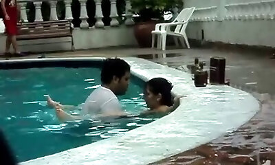 latina enceinte devient excitée et veut se faire baiser dans la piscine