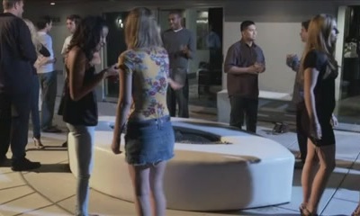 après avoir séduit l'homme dans la piscine, michele james lui donne des coups de seins