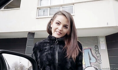 la jolie nana nubile masha dévoile ses lèvres devant la caméra près de la route