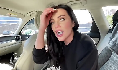 une méga-salope de milf en chaleur dans une voiture en mouvement