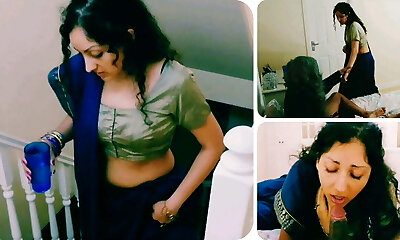 bhabhi indien en saree s'ébattant avec une énorme bite avaler cum-shot