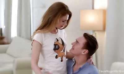 Sensual and thin redhead white chick undressed and fucked on the bed