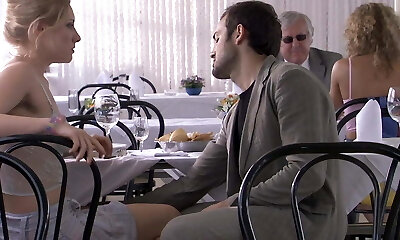 Fresh and torrid big-boobed girl Tiny Teen climbs onto the table to masturbate a bit