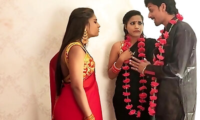 Polygamous dude permits his wives to give each other a make-out then he comes to make them orgasm