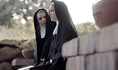 Naughty nun Kenna James thirsts to eat humid pussy in the evening