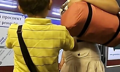 Wondrous japanese Cougar in tight too short miniskirt ! upskirt shame on her ! 3